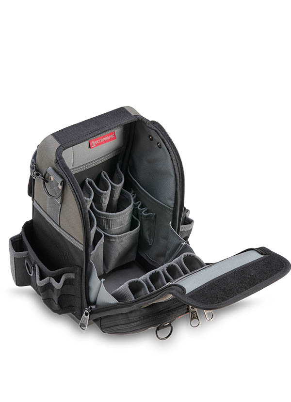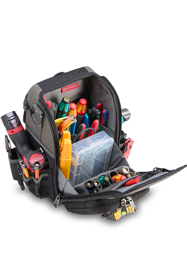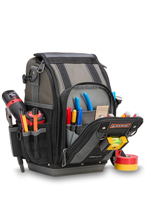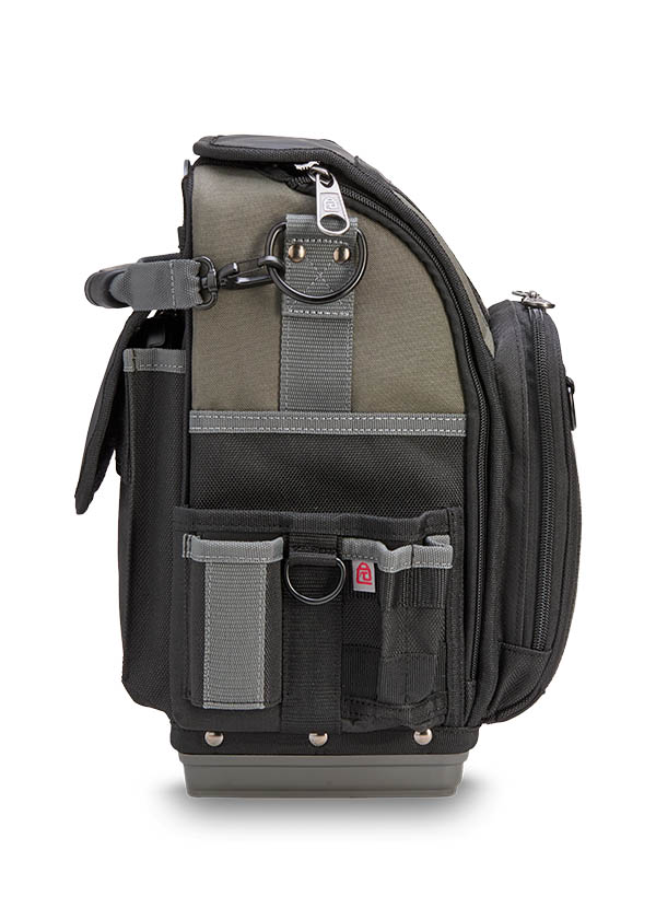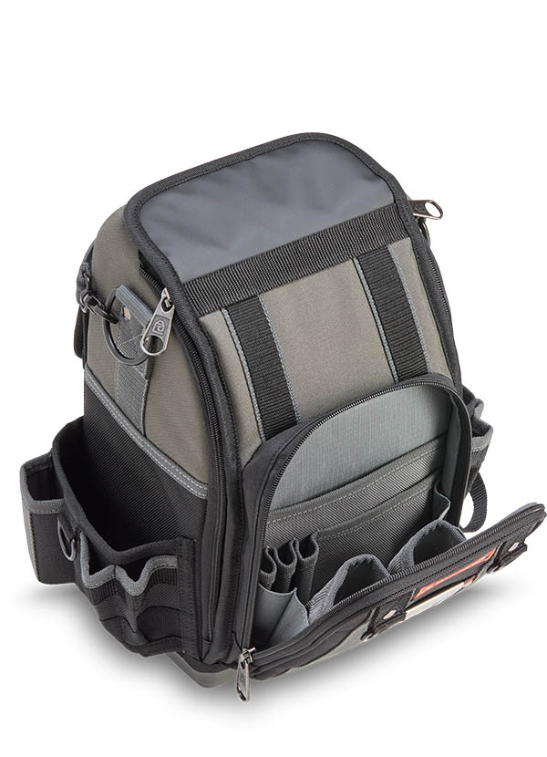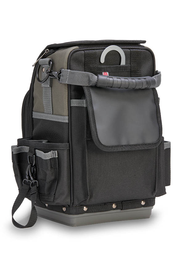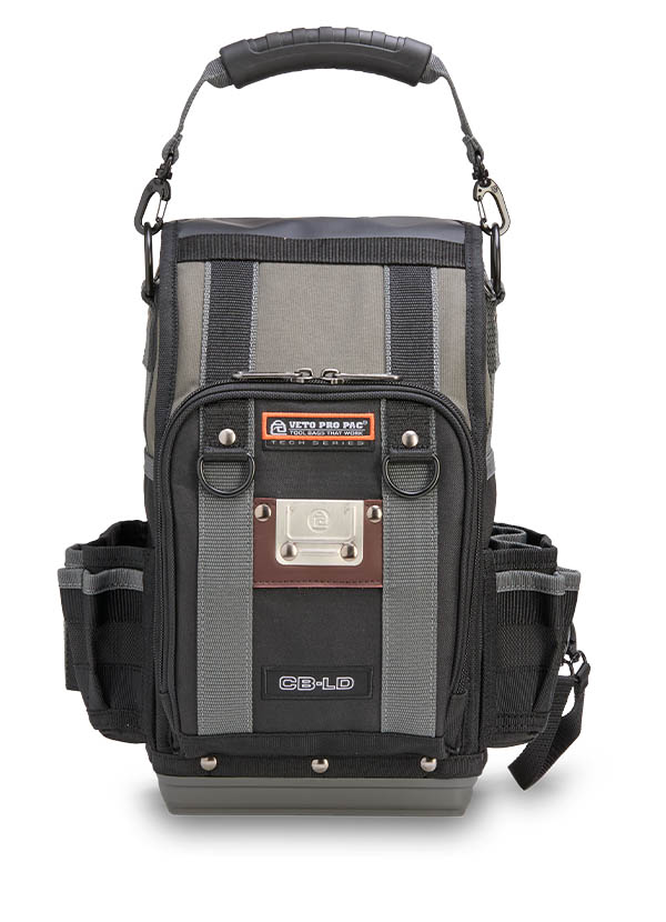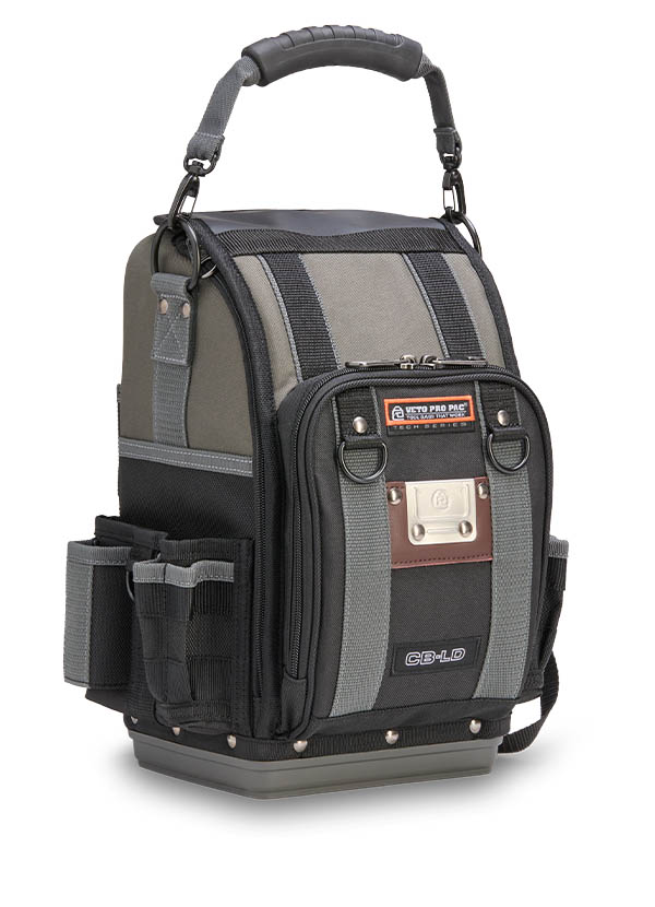 The CB-LD is a closed-top, single-sided compact technicians’ bag built for maximum efficiency in tight spaces. A highly accessible front zippered compartment with internal organization keeps hand tools, smart probes, or small accessories neatly arranged and within reach. The spacious main compartment provides ample room for hand tools, as well as larger items such as an impact drill or multi-meter. A rear water-resistant pocket offers secure storage for additional gear, while the integrated hanging hook keeps the bag elevated and off the ground. Designed for tradesmen who need quick, organized access to their tools and equipment, the CB-LD delivers a compact yet versatile solution for everyday jobs.