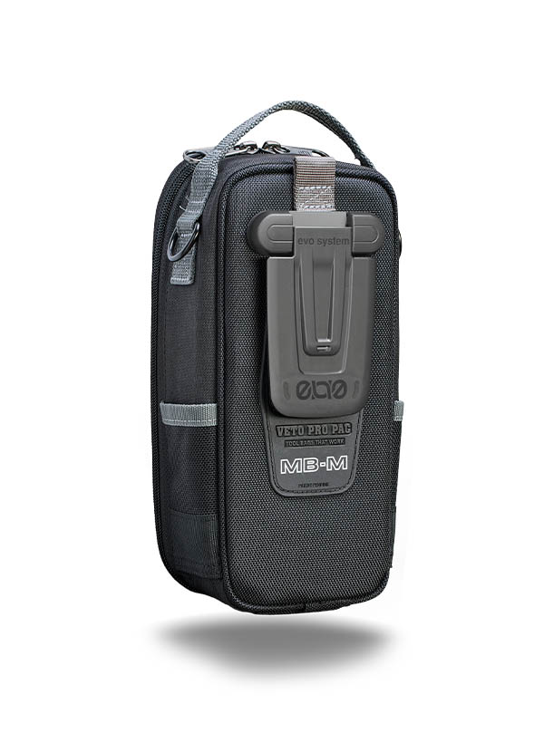 - Utilizes the evo system™ clip for attaching the pouch to a larger bag with an evo system™ dock, a tool or waist belt, trouser pocket, or magnetically mount surfaces inside a work van or equipment requiring service