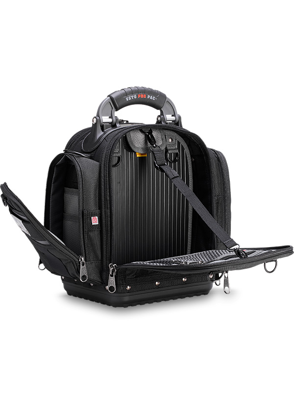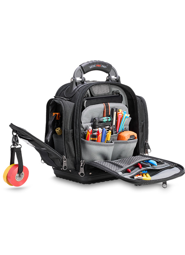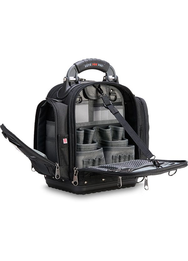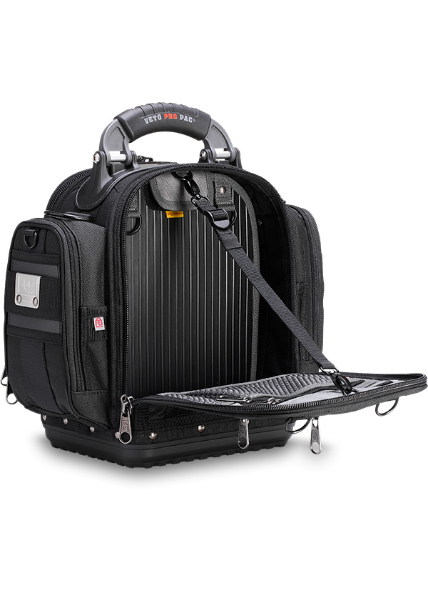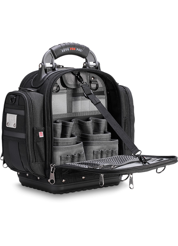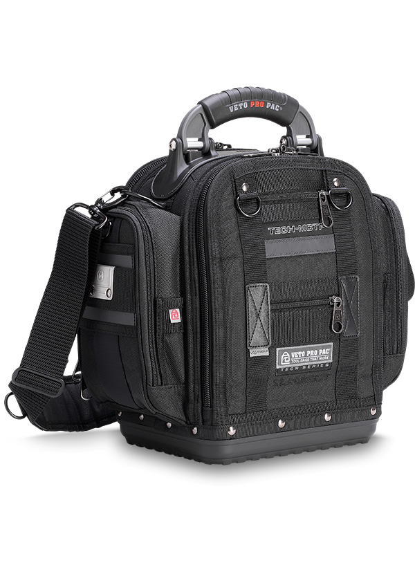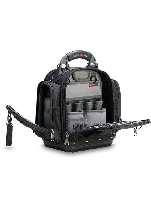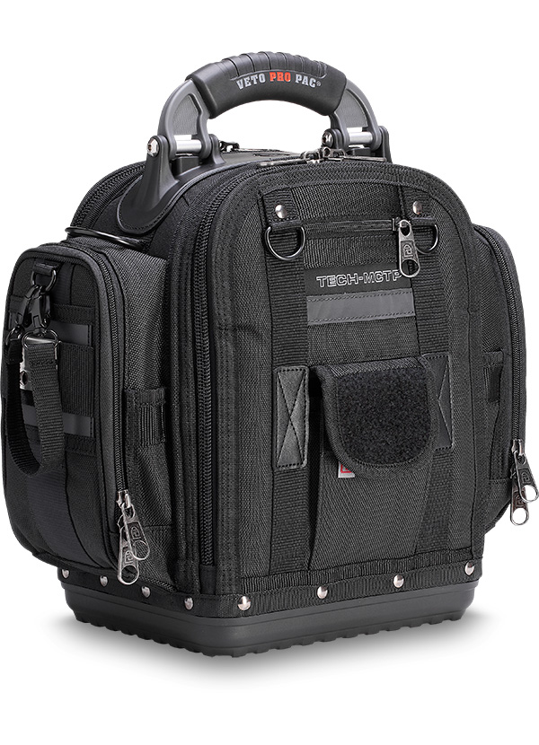 The TECH-MCTP BLACKOUT is an all-black compact service tool bag. It is identical in construction and storage capacity to the TECH-MCT BLACKOUT, with the addition of side pockets for separate meter or tool storage. The bag also features Velcro for personalizing with morale patches and includes our proprietary V-SWAP™ interchangeable panel system. Includes Tool and Meter panels shown below. See additional panels, sold separately, via the QR code.