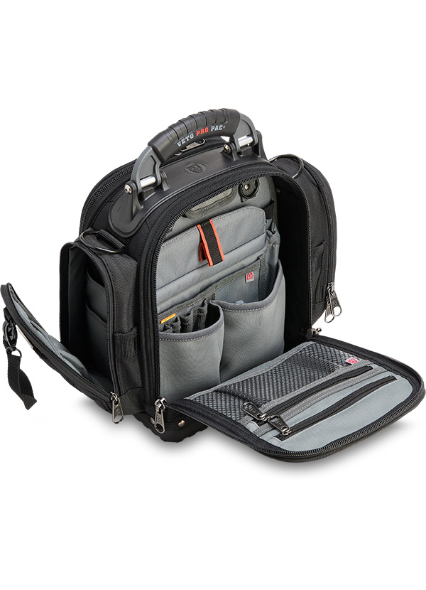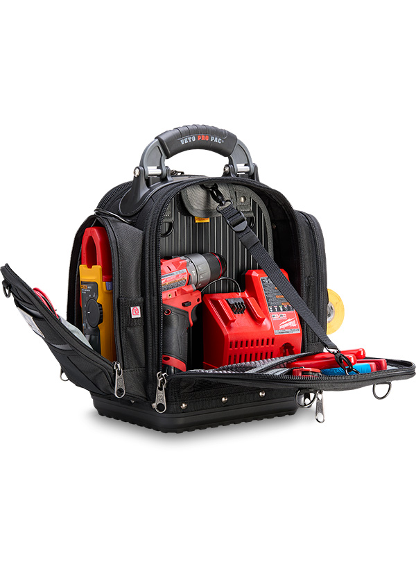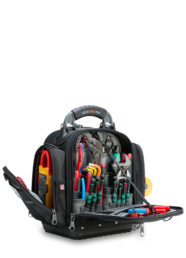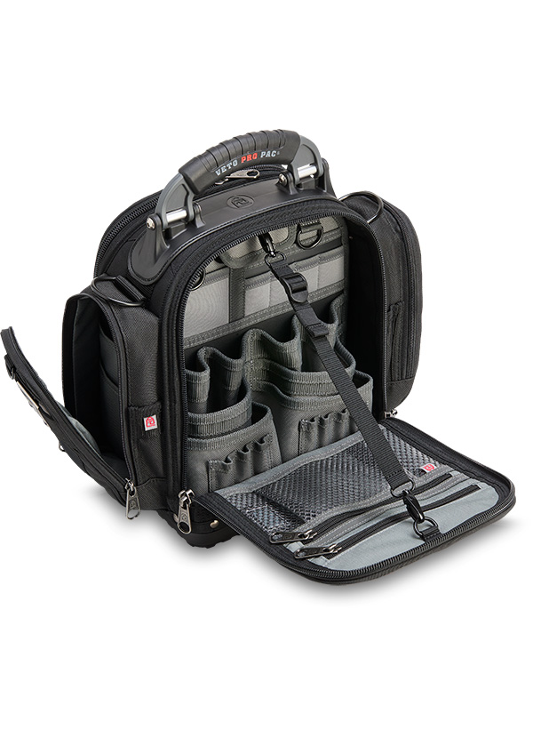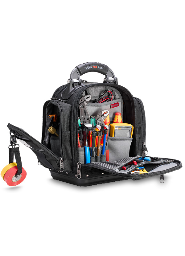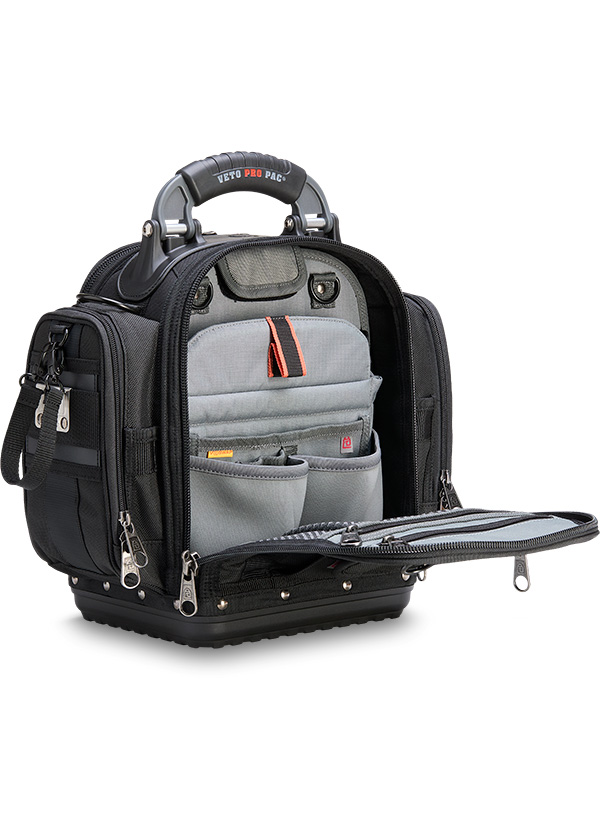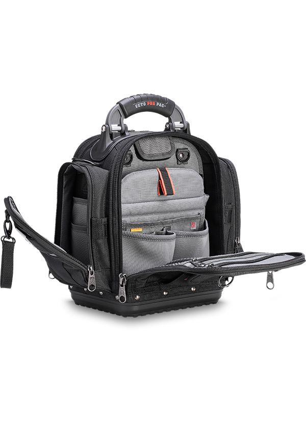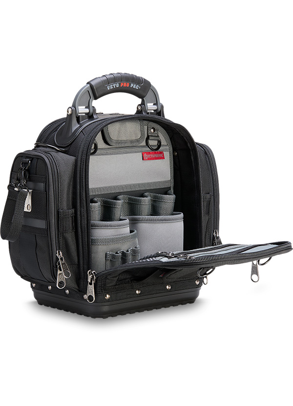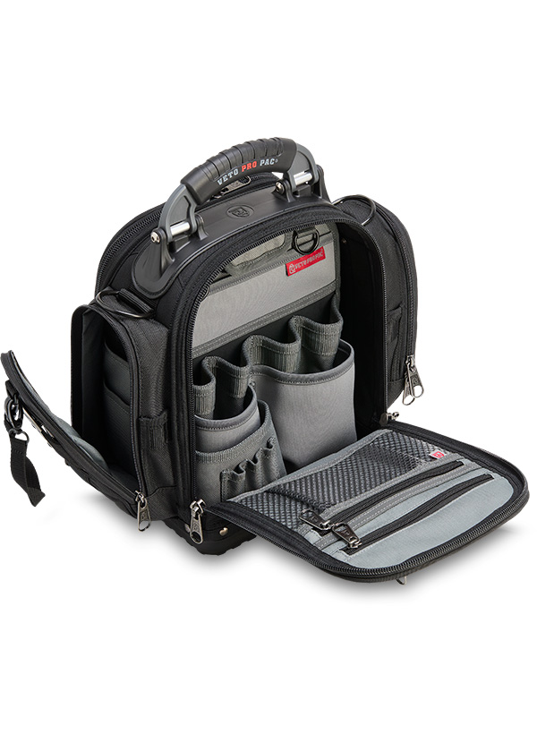The TECH-MCTP BLACKOUT is an all-black compact service tool bag. It is identical in construction and storage capacity to the TECH-MCT BLACKOUT, with the addition of side pockets for separate meter or tool storage. The bag also features Velcro for personalizing with morale patches and includes our proprietary V-SWAP™ interchangeable panel system. Includes Tool and Meter panels shown below. See additional panels, sold separately, via the QR code.